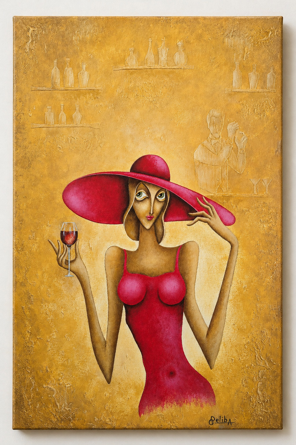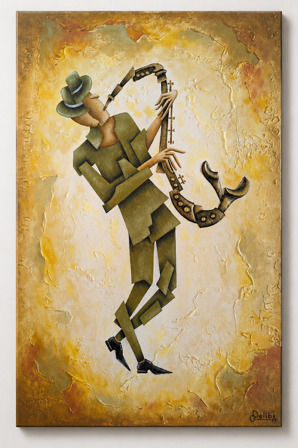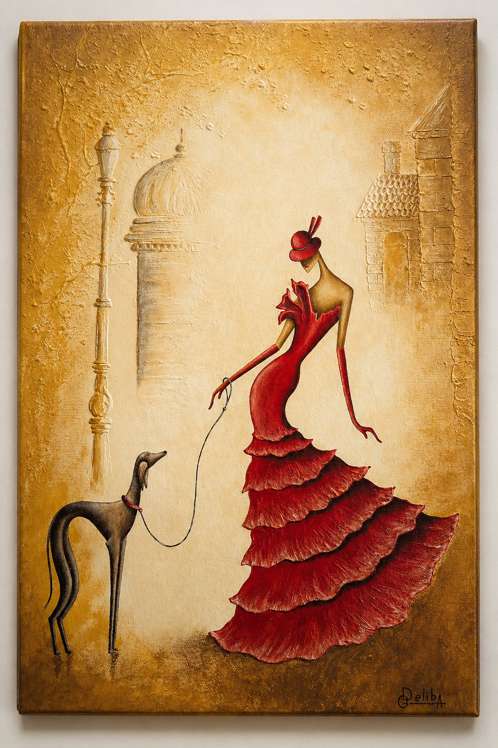 Deliba Art brings together the visual rhythm of jazz, the poise of elongated figures, and the atmosphere of historic French and Georgian streets, balconies, cafes, and evening lights through textured oil and acrylic painting.
