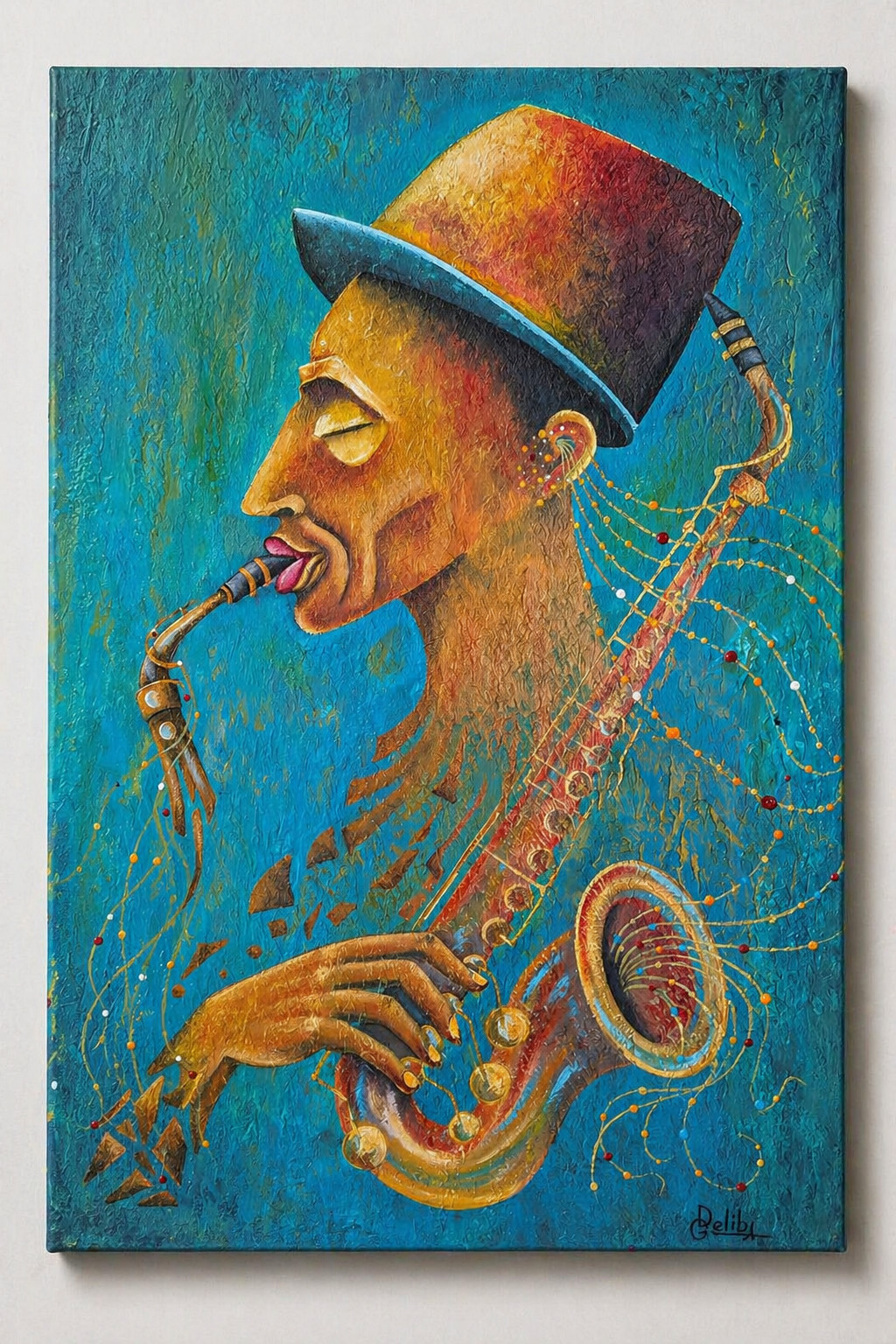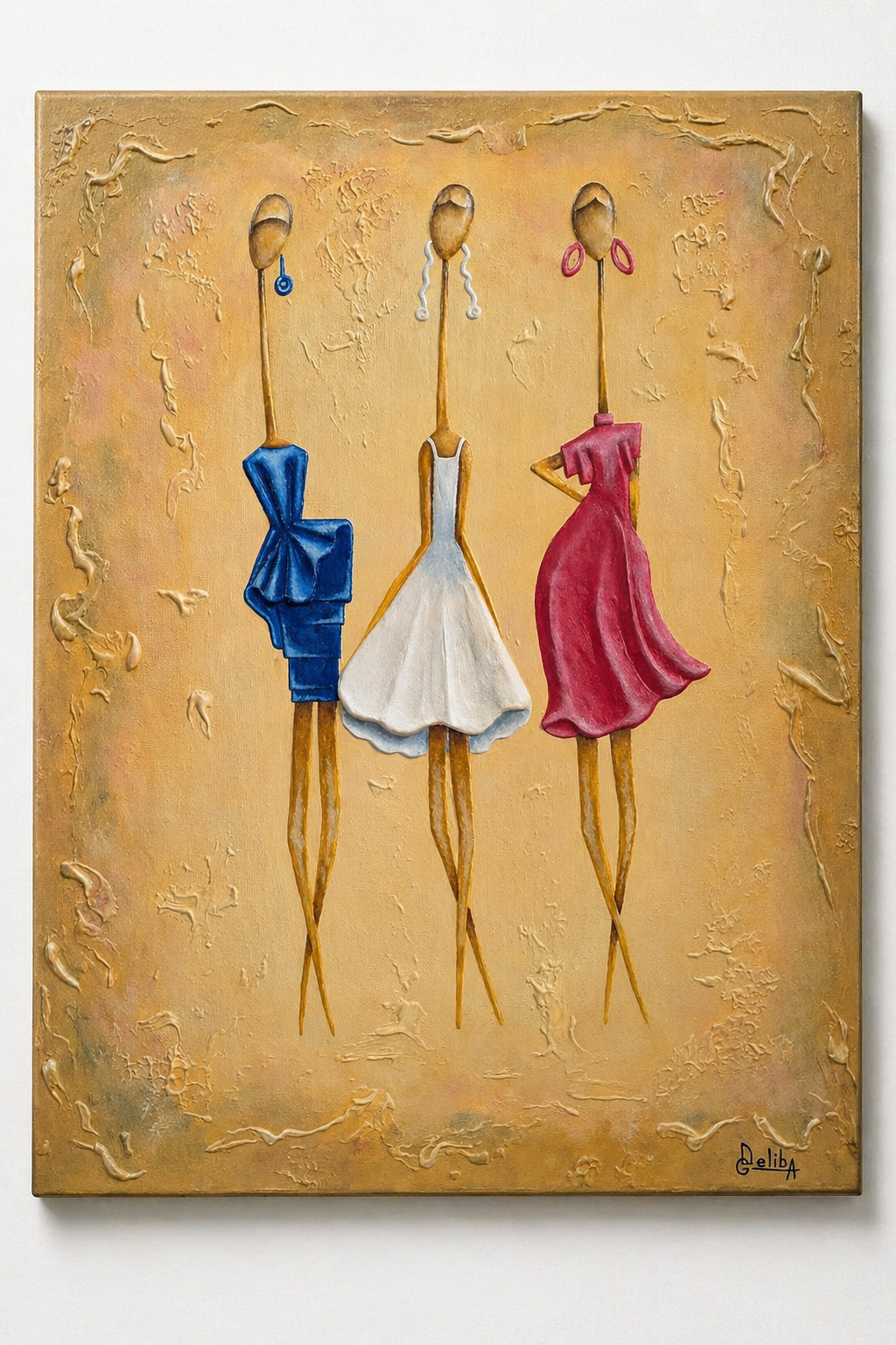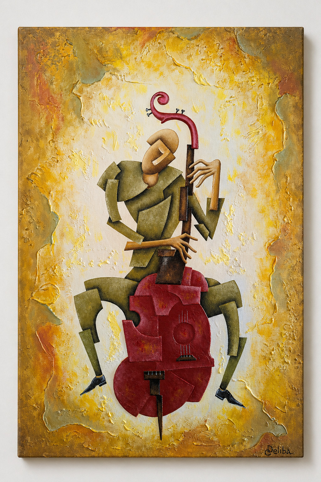 Deliba Art brings together the visual rhythm of jazz, the poise of elongated figures, and the atmosphere of historic French and Georgian streets, balconies, cafes, and evening lights through textured oil and acrylic painting.